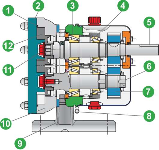 - Easy Maintenance – The easy-to-access front loaded mechanical seals reduce maintenance time considerably. All shaft seal O-rings are identical and access to the shaft seal is achieved by simply removing the front cover and the rotors. Likewise, timing of rotors is an uncomplicated procedure.